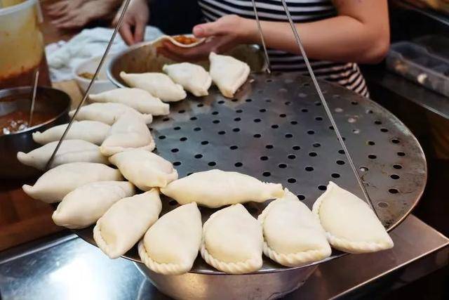 他家咖喱饺是现包现下锅炸的,包饺子的阿姨很可爱,看我一直拍照还会腼腆的笑,但手里的动作,一直没停下来过,熟练的压酥油面团、放馅料,再一个皱一个皱地包起来。