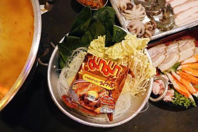 烤肉之前,要记得用猪油抹一圈烤盘,烤起来的肉才不会沾在烤盘上,而且更油更香。生肉处理的很干净,海鲜品质也很新鲜,还有特色的五花肉卷芝士串。最后一定要下一包泰国MAMA面才算完美的结束。