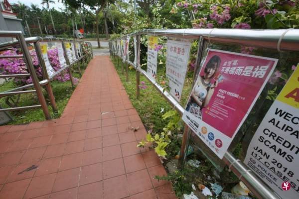 据悉,这些海报是后港邻里警局大约一个月前设置的,针对的主要是信贷换性爱骗局,根据海报显示,这一区今年1月到7月共发生17起诈骗案。