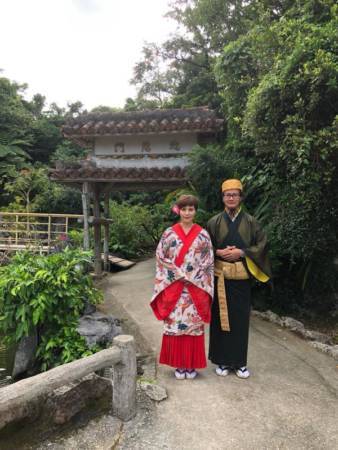 陈汉玮和郑惠玉在日本冲绳感受当地文化。(新传媒提供)