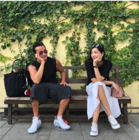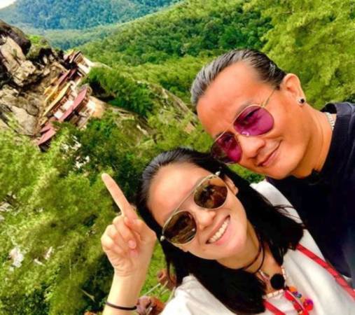 沈琳宸和陈汉玮在不丹登高看虎穴寺。(互联网)