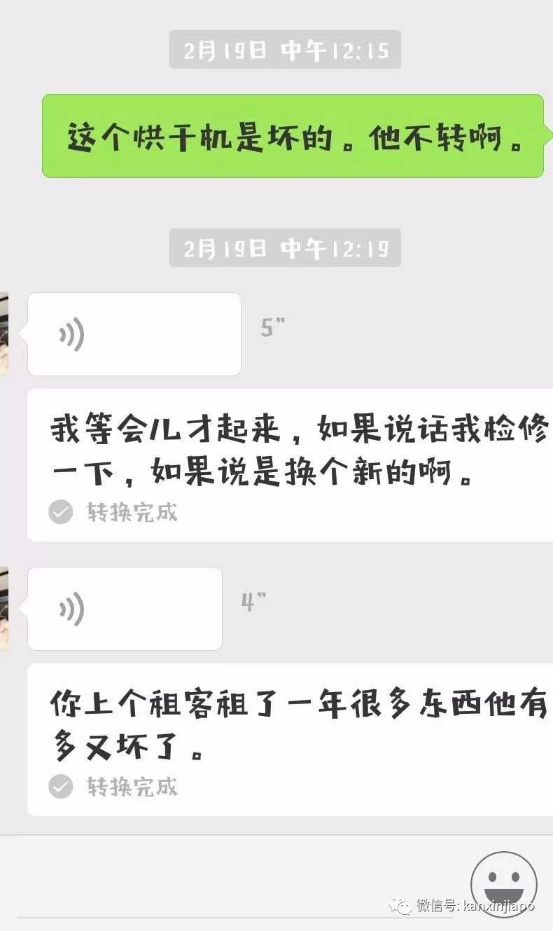 我们住进去的时候,烘干机是坏的不能用,跟他说了他说会检修或者换一个新的,(但是到我们搬离,都还没有检修过)空调不好使也滴水,我们初来乍到毫无社会经验的单纯相信他的两个人,就这样在高房租的小屋子里蜗居了半年。