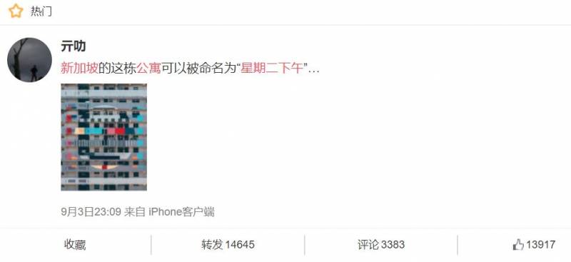 从字面上看,完全不懂这条热搜想表达什么…….公寓和星期二下午有什么关系?难道星期二下午新加坡要有新公寓开盘了吗?为什么中国会对新加坡公寓开盘这么感兴趣?