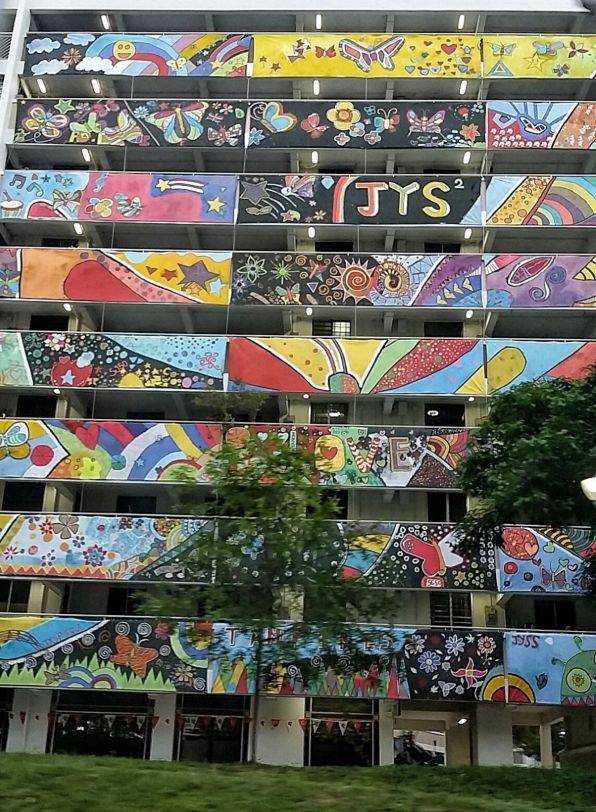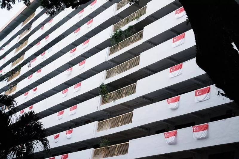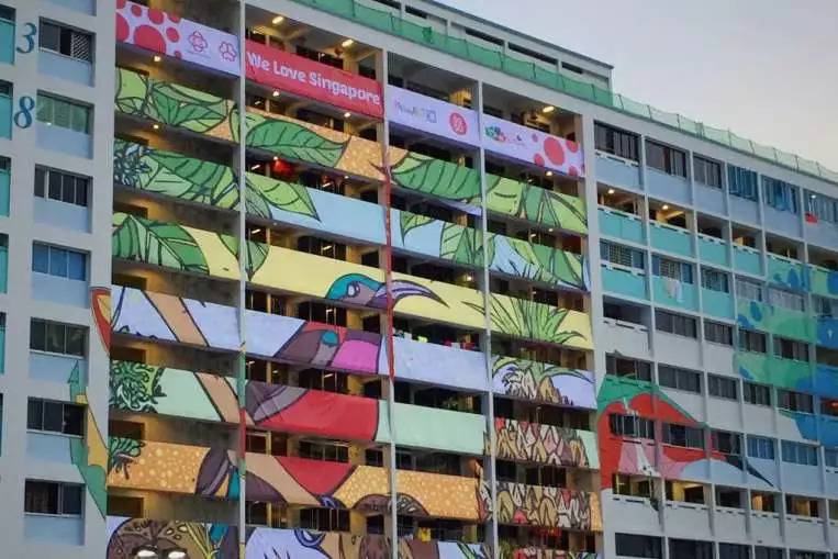 除了各种五彩斑斓的涂鸦外,新加坡组屋在国庆节期间也会变得相当“爱国”,每年国庆期间组屋外都会国旗飘飘,相当壮观~