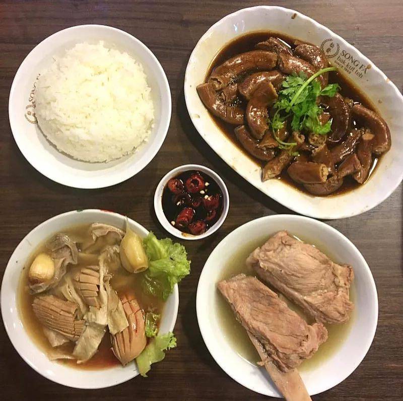 松发肉骨茶由杨应松先生于1969年创立,从最初以手推车卖肉骨茶的营业方式,50年的悠久品牌历史至今已发展成为新加坡家喻户晓的老字号餐饮品牌,排队是必不可少的。一碗丁香、肉桂、八角、茴香和猪骨经过长时间文火煨制,配上新鲜的大蒜和白胡椒,汤色清淡却散发着胡椒清香,再配上一款你喜欢的卤味,可谓是‘淡妆浓抹总相宜’。