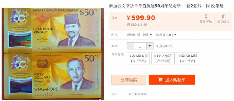新加坡文莱等值流通50周年50新币纪念钞,如今价值118新币。