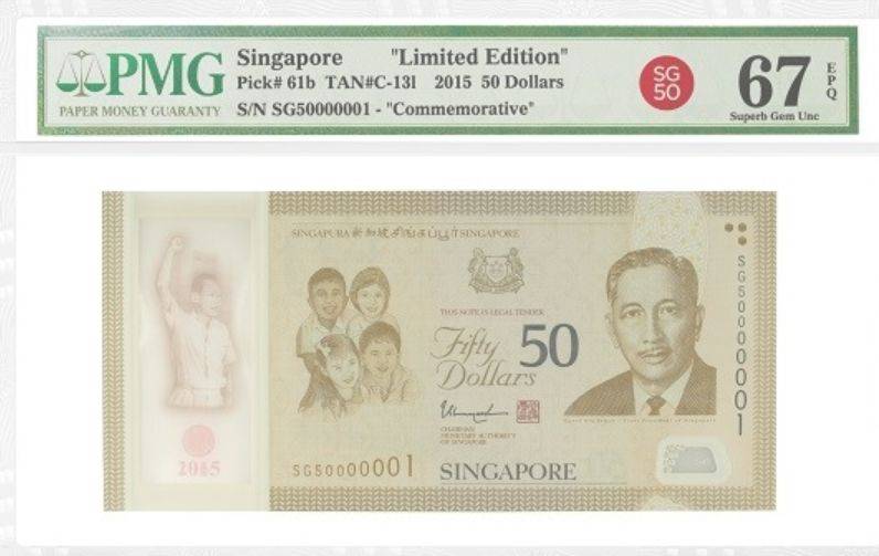 去年在Mavin International拍卖会上,一枚序列号为000001的新加坡建国50周年的纪念钞,便拍出了552,000新币天价!轰动了整个新加坡。