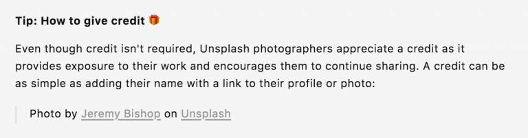 当然,如果你真的使用了他们的照片,也请在照片下写下摄影师的名字吧。只要写下带有连结的姓名或照片就好。