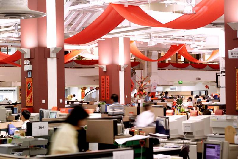 平日的早报新闻室和一般办公室无异,但每年农历新年来临前,同事们都会在办公室里贴春联、挂上新年装饰,在一片红彤彤的喜庆氛围中迎接新一年的到来。(档案照片)