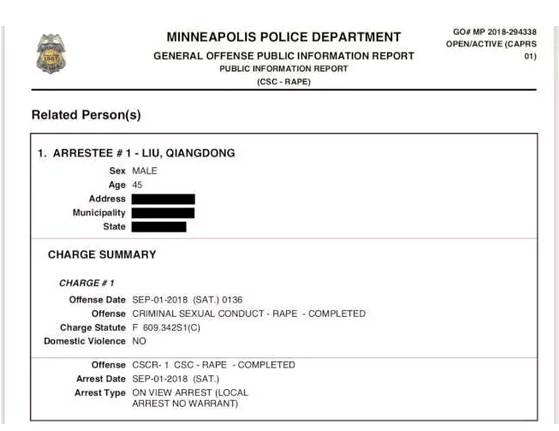 45岁的刘强东是以“强奸”重罪遭逮捕,从警方据报到当场完成报告,当地负责该案的警察都挂着随身摄影机全程纪录。明尼亚波利斯警察局发言人艾尔德(John Elder)说: