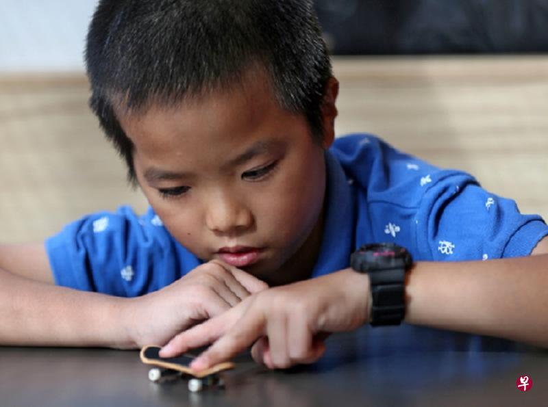 林俊辉用手指控制迷你滑板,做出各式各样的花式。