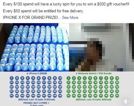 其中一个举办这类游戏的网络平台Auction Lah SG,近期直播抽iPhone X和Nintendo Switch游戏机。每个赢取iPhone的机会是50元,而游戏机的则是每颗20元。抽到最后十颗球的时候,价格就分别是每颗100元和50元。