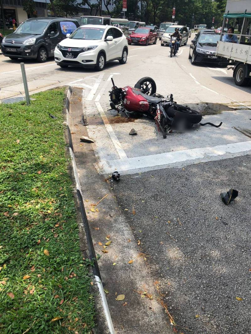加基武吉1道(Kaki Bukit Ave 1)和友诺士连路(Eunos Link)的交界处,中午发生一起涉及一辆莲花(Lotus)跑车和一辆摩托车的车祸。跑车撞上交通灯行人等候处的防护柱,车头撞得稀烂,摩托车也侧翻路边,零碎部件洒落一地。三人送院治疗。