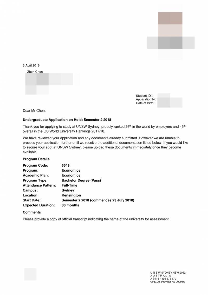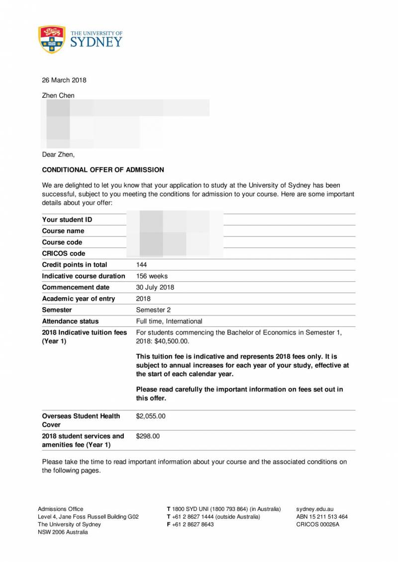 2018年, 被澳洲雪梨大学和新南威尔士大学经济学专业双录取(均属澳大利亚名校联盟“八大名校”之一)