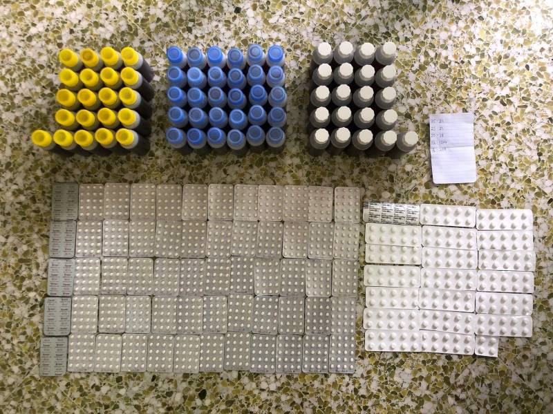 当局在行动中共起获了100升的非法制造咳嗽药水以及1400颗各类药丸。