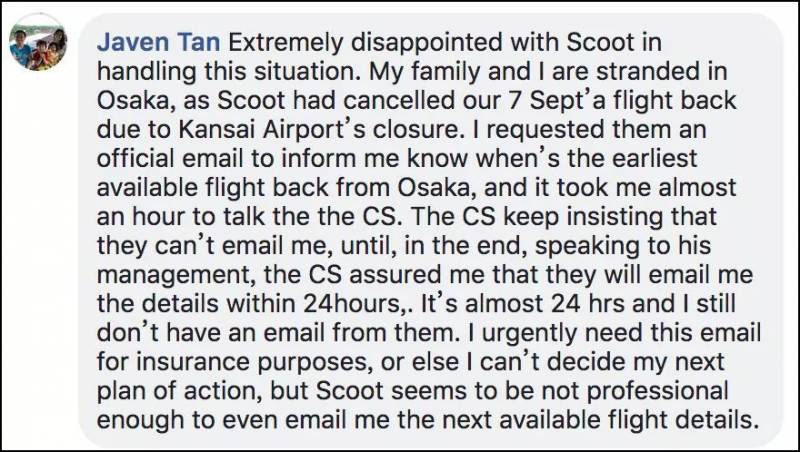 关西机场和新千岁机场关闭,多数航班受影响,而酷航的脸书主页,则变成了乘客们大型diss现场……
