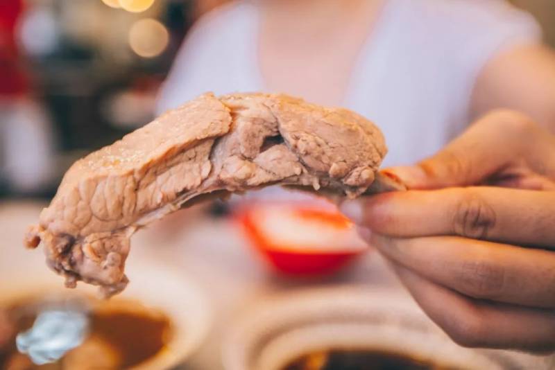 猪肉很香,一点儿不柴,我啃了一根半,觉得味道淡可以蘸点 酱油 。