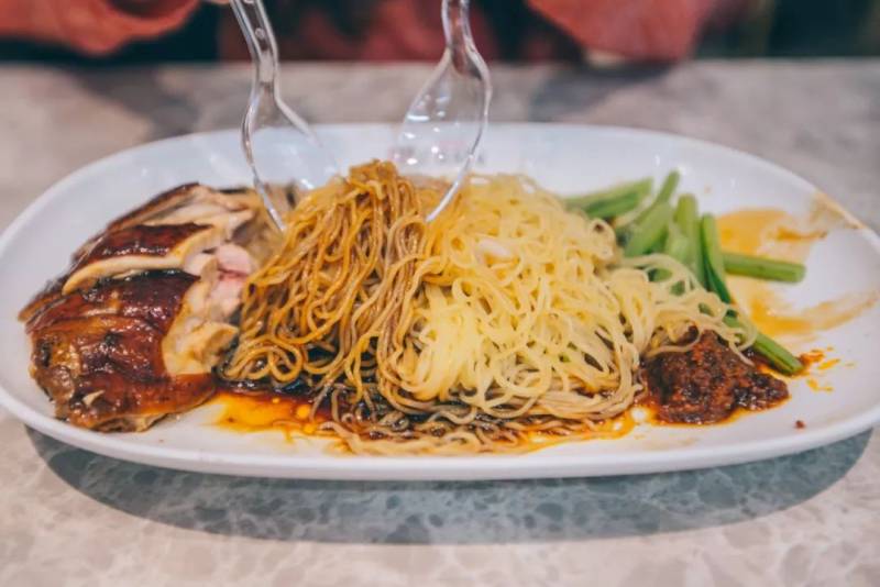 这个面非常好吃,很有韧劲,很能吸酱汁的味道,吃进嘴里油油滑滑的。豉油鸡做的也很好,嫩而有味,放在香港也不会输。