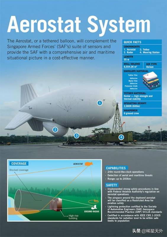 新加坡空军将继续投入大量时间和资源来改进其综合防空(Integrated Air Defence,IAD)网络,将几种新的雷达系统投入使用,包括:以色列航空航天工业(Isarel Aerospace Industries,IAI)公司的“埃尔塔(Elta)”E/LM-2084多任务雷达(Multi-Mission Radar,MMR)和泰雷斯-雷声系统(Thales-Raytheon Systems)公司的 “地面霸主(Ground Master)”200在内的陆基雷达,以及部署在其两个新的55米TCOM浮空器上的E/LM 2083浮空器机载预警雷达。