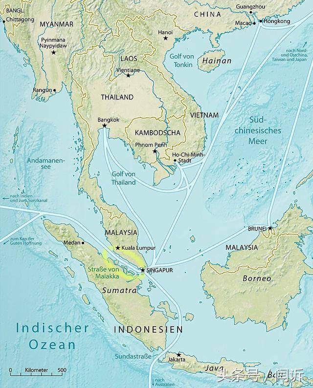 而马六甲海峡很长,长度超过1000公里。在整个马六甲海峡,新加坡占据了很小的一个点。
