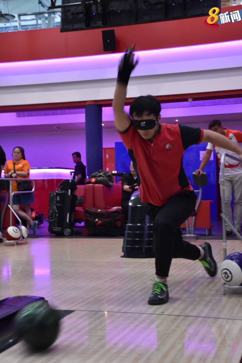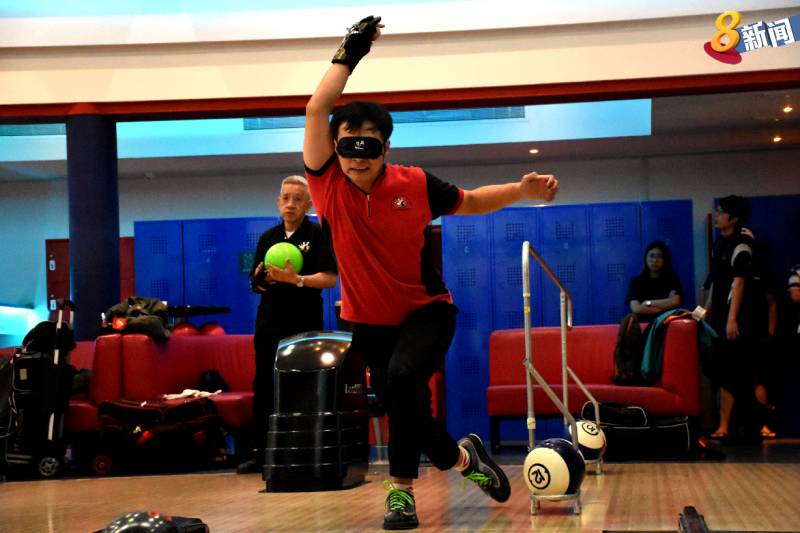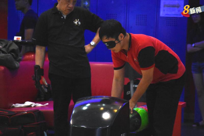 为了备战10月6日的亚残会赛事,他在周日傍晚六点结束电话营销员的工作后,就会搭乘公共运输前往保龄球馆训练。每星期四天,带着眼罩在保龄球道上练习。