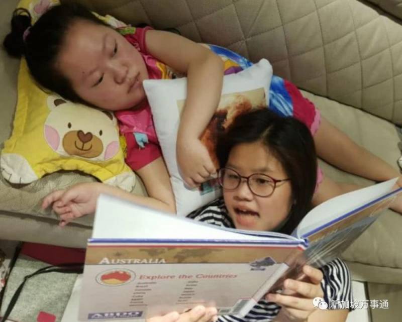 于是在今年,原本念中三的大女儿,决定从今年起退学在家自学!一边照顾妹妹的同时,一边每天花4小时学习七科目,目标考进新加坡国立大学!