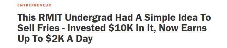 卖的是什么新奇的食物呢?不,他卖的只是平凡的 — 炸薯条。