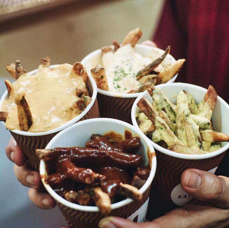 这一杯杯装在杯子里,再淋上酱料的炸薯条看似简单,却是他花了不少时间研究和反复尝试的成品。