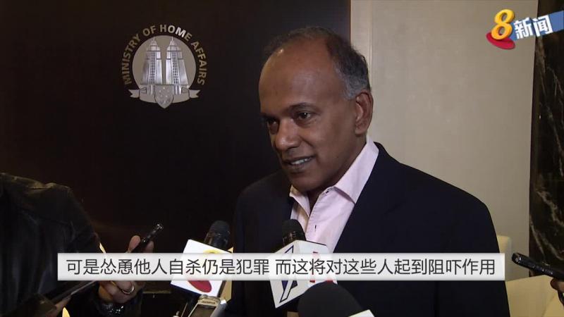 内政部长尚穆根说:“我不觉得这样会减低阻吓作用,因为如果你想自杀,你就不会担心自己会不会坐牢,因为你已认定自己不会再活着。可是怂恿他人自杀仍是犯罪,而这将对这些人起到阻吓作用,这也会继续下去。”