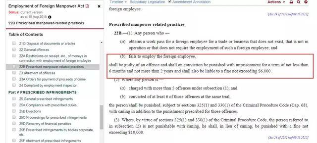 更重要的是,新加坡人力法有明确规定,挂靠准证在新加坡是严重的刑事罪名,一经发现,雇主必然被判入狱!警察或者人力部的官员都可以在没有逮捕令的情况下进行逮捕调查,一旦罪名坐实,可以判不少于6个月低于2年的监禁,和不超过6000的罚款。情节严重甚至可以被判鞭刑。