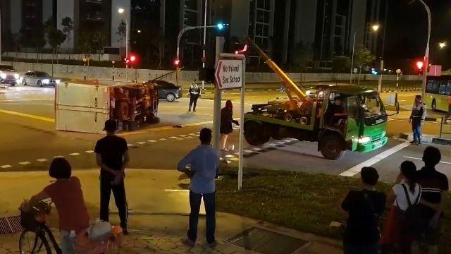 网民上传至Facebook群组SG Road Vigilante 的视频显示,一辆罗厘翻侧在公路上,现场有工作人员使用一辆吊臂车将罗厘拉起,吸引不少人围观。