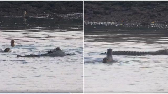 双溪布洛湿地保护区出现水獭一族与鳄鱼对峙的一幕,让人为水獭捏一把汗。不过十分钟的对峙,最后落跑的竟然是身形巨大的鳄鱼,过程被拍下视频,惹网民大赞水獭英勇!