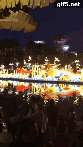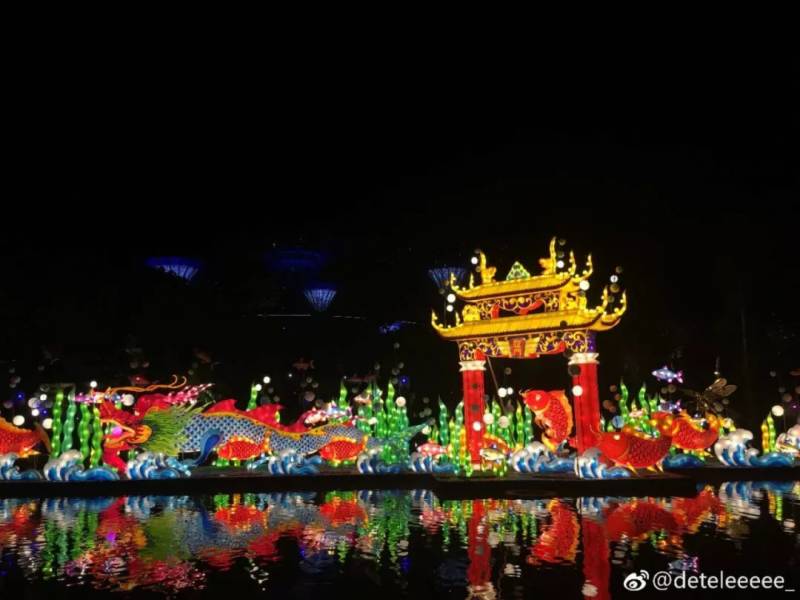 今年的“滨海湾花园庆中秋”的主题是“奇幻之秋”,从9月6日会一直持续到中秋节。本次灯展的最大的亮点便是蜻蜓湖上的“鲤鱼跃龙门”,对,就是上面动图的那个!展示的是什么相信大家也都知道。据说看过这个灯饰的人都会事业有成哟~