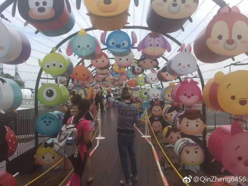 这就是长达40米的灯笼长廊,全是由我们熟悉的迪斯尼角色Q版造型组成,一共包括了四个系列:米奇家族、公主系列、维尼系列还有Elsa系列。快来看看你能说出多少个角色的名字~