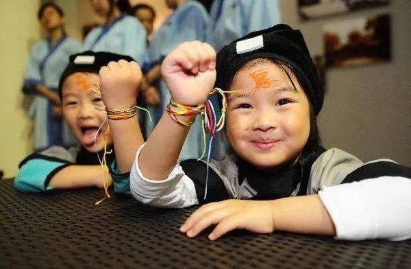 挂五色绳 - 早上起来给孩子们挂在手上,寓意平安健康。