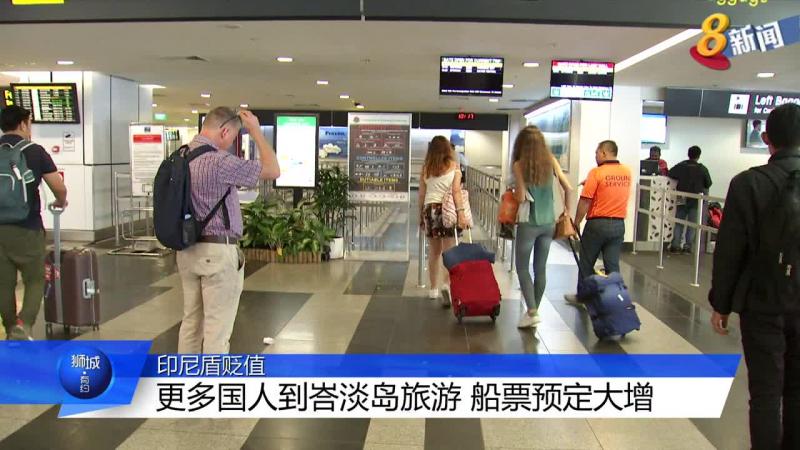 印尼盾贬值到20年新低,带动更多国人到印度尼西亚峇淡岛旅游,线上订票服务业者表示,船票预定激增七成,旅行社则指出,预定旅游配套的人同比增加两成。