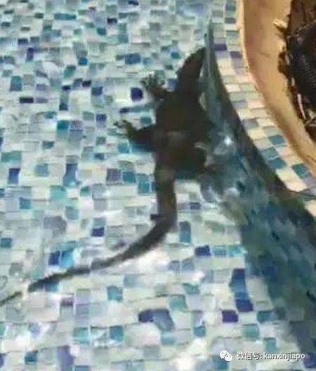 最厉害的是,新加坡常年炎热,小区楼下的泳池还惊现了这样一位泳客!