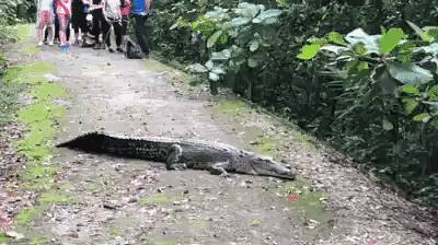 今年一月,鳄鱼路霸干脆在双溪布洛湿地公园行人道“散步”,跟水獭比,行人们对鳄鱼的态度可礼貌多了。