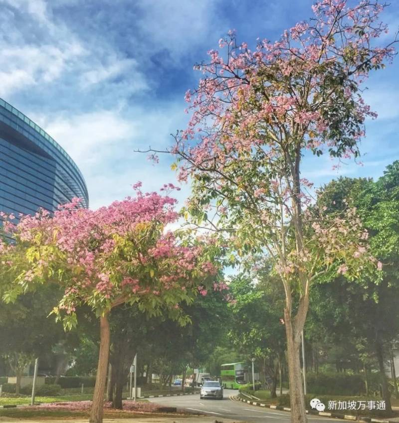 最近有“新加坡樱花”之称的紫绣球树(Trumpet Tree,又称粉花风铃木)花开正在全岛各地盛开!