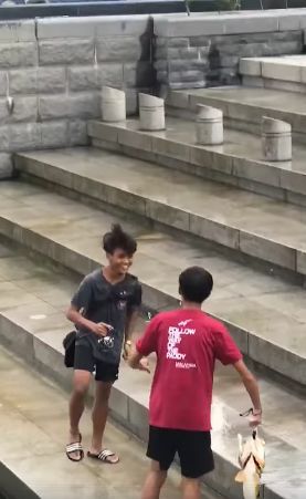 视频中,我们能看到2名少年在鱼尾狮公园钓鱼。