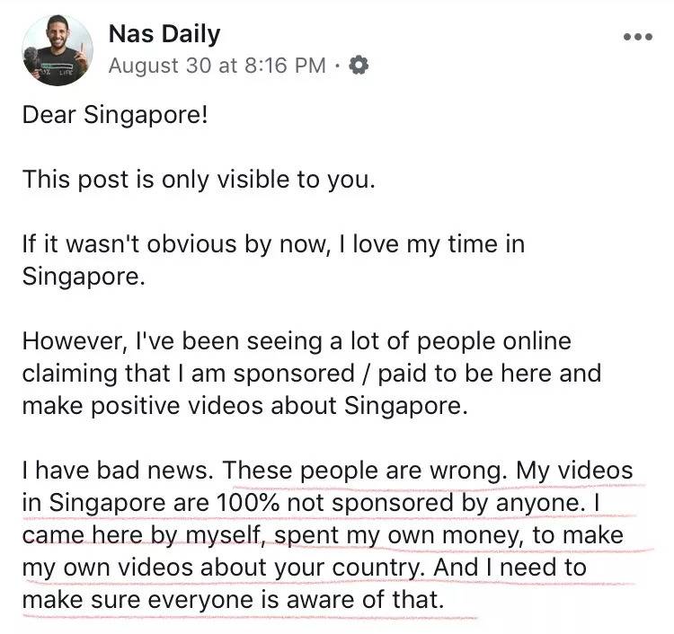 他在Facebook上开设一个名为Nas Daily的页面,Nas在阿拉伯语中的意思是“人”。
