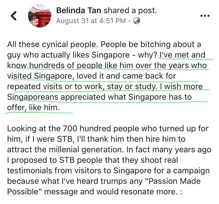 脸书用户Belinda Tan 说: