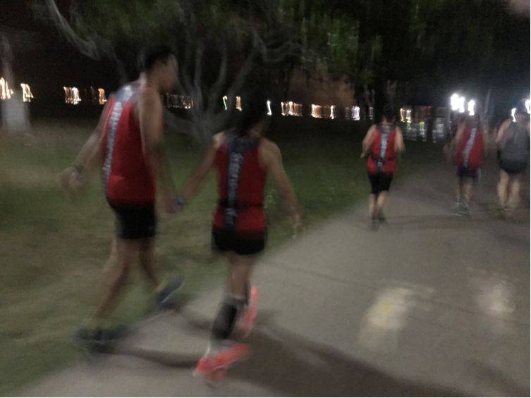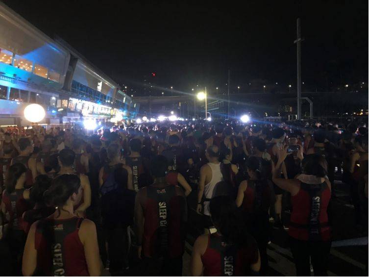 等了 好久好久,主持人不断道歉,说让你们久等了。一直到大概11 50pm,才开始依照批次放行开跑。我等菜鸟,排在最后。等到我们最后批次开跑时,已经几乎00 30am了,比原定时间几乎晚了一小时。