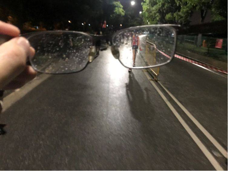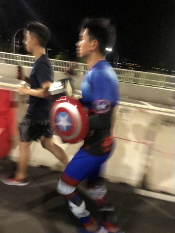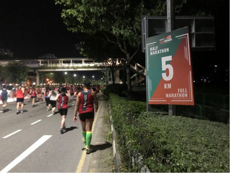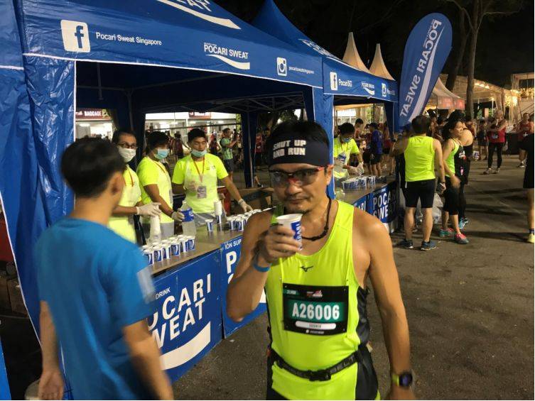 这时,大概到了第13公里处。一来是我过去一整个月根本没训练,体能不行,二来也是连续两个补水站没水。水都没了,更别说运动饮料,随着冒汗而流失的电解质无法补充。到了这里,我忽然感觉左小腿肌肉一跳,不好!要抽筋。我有点紧张,放慢脚步,然后到一旁去拉伸。然后继续跑。