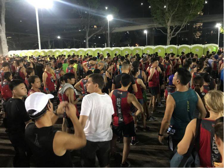 计划是11 30pm开跑,我看看当时才10 50pm,于是先上厕所。没想到厕所排队这么多人。第一次感受到女生排队上厕所的痛苦: