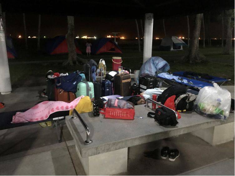 也有放了满满一凉亭的物品,甚至包括行李箱的,真不知是什么人: