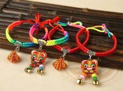挂五色绳 - 早上起来给孩子们挂在手上,寓意平安健康。