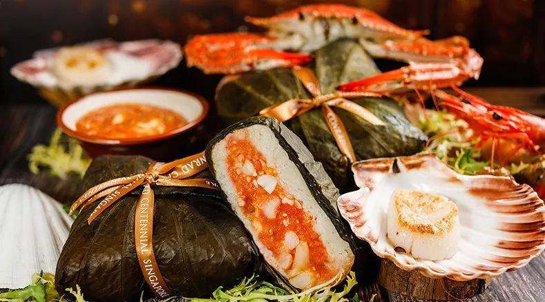 除了传统的肉粽,新加坡Golden Poney餐厅推出了专为海鲜爱好者设计的一款新口味 - 辣椒蟹法国带子粽。