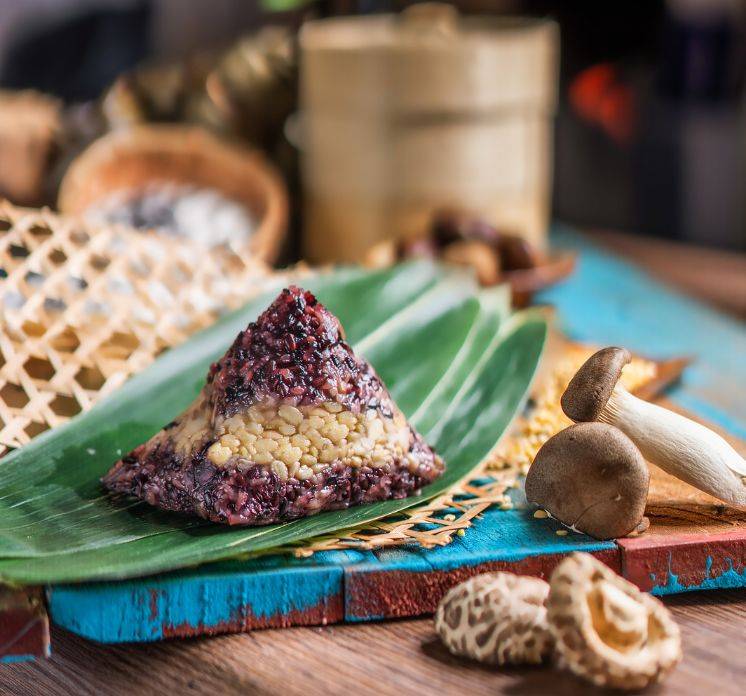 这款素粽子,包括两种不同的蘑菇:新鲜冬菇与花菇,炒熟了之后在包裹进黑糯米中,蘑菇爱好者的不二选择!