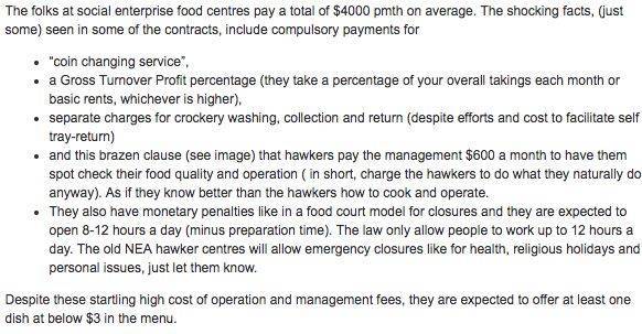 而博客文中透露,SEHC的小贩合约协议显示,他们平均每月支付的总费用高达$4000!这还比新加坡最受欢迎的麦士威熟食中心(Maxwell Food Centre)最高出价者的成本来得高!
